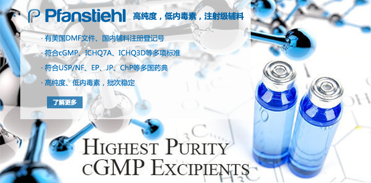 “熱烈祝賀Pfanstiehl的注射級甘氨酸Glycine(G-140)喜獲CDE登記號F20250000403, 這是Pfanstiehl產品獲得的第18個CDE登記號!”甘氨酸在醫藥輔料制劑中應用廣泛,, 可作為緩沖劑,增溶劑,穩定劑等,具有諸多優勢。Pfanstiehl秉承一貫高品質理念,為滿足全球生物制藥行業對于高品質甘氨酸的需求,隆重推出的注射級甘氨酸Glycine (G-140), 具有超高純度,超低內毒素,超低金屬殘留的特點,單獨檢測29種金屬離子,并且新增DNA,RNA,DNA酶,RNA酶和脂肪酶,亞硝酸鹽等多項質量指標的檢測,符合多國藥典規定(USP, EP, BP, JPE, ChP),可用于生物治療性藥物和疫苗的生產。產品信息:· 產品名稱:Glycine, High Purity, Low Endotoxin, Low Metals, USP, EP, BP, JPE, ChP (G-140)· 中文名稱:甘氨酸· 分子式:C2H5NO2· 分子量:75.07 g / mol· CAS號:56-40-6· 產品貨號:G-140產品特點: · 超高純度,超低內毒素,超低微生物含量,超低金屬雜質殘留· 質量指標新增DNA,RNA,DNA酶,RNA酶,脂肪酶和亞硝酸鹽檢測· 符合多國藥典:USP, EP, BP, JPE, ChP· 符合ICH Q3D標準· 符合GMP標準· 已獲DMF和CDE登記號 產品應用:· 緩沖劑· 穩定劑· 增溶劑如果您對Pfanstiehl注射級別Glycine G-140感興趣,歡迎聯系Pfanstiehl 中國區代理商北京西美杰科技有限公司獲得如下詳細的產品概況說明文件和測試樣品。Pfanstiehl Inc.最新產品系列如下,歡迎聯系北京西美杰科技有限公司獲取100g裝免費樣品。北京西美杰科技有限公司為Pfanstiehl中國代理,為客戶提供完善的技術支持與售后服務。歡迎撥打西美杰客服電話400-050-4006或者登陸網站www_xmjsci_com.b-m-i.net了解更多信息。 更多>
